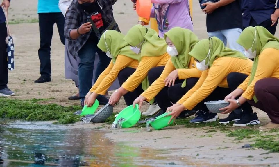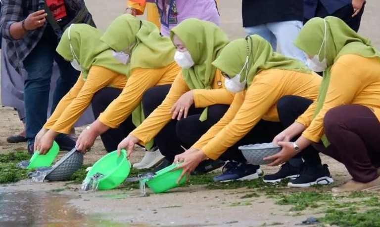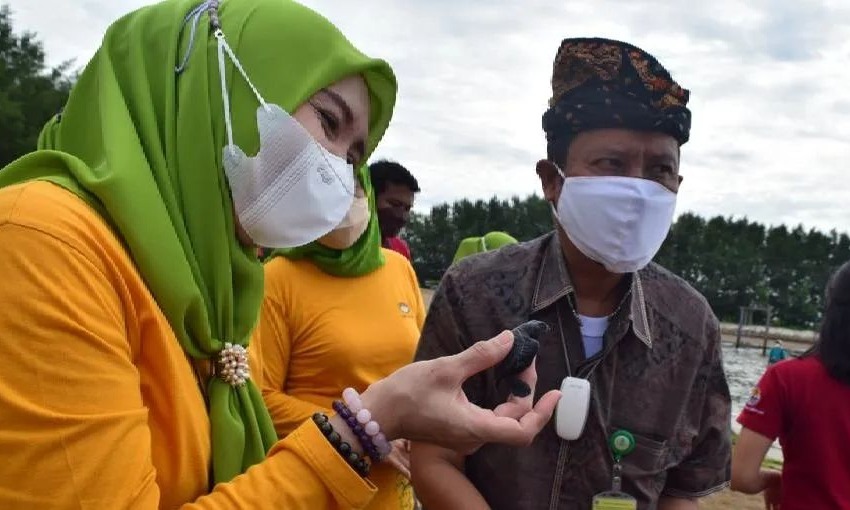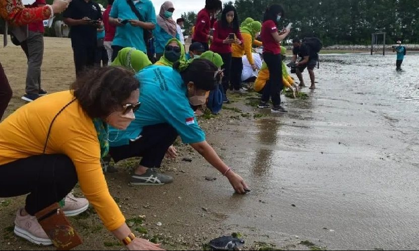 Berlokasi di Taman Inspirasi Mertasari Pantai Sanur dalam rangka upaya Konservasi dan kelestarian satwa laut dilindungi khususnya penyu, Dharma Wanita Persatuan Kementerian LHK melepas liarkan tukik (anak penyu) sebanyak 40 ekor yang terdiri dari 2 jenis yaitu pertama jenis Penyu Lekang (Lepidochelys olivacea) sebanyak 29 ekor masing masing berumur 2 hari ( 10 ekor),berumur 3 bulan ( 9 ekor) dan berumur 5 bulan ( 10 ekor). Jenis kedua adalah jenis Penyu Sisik (Eretmochelys imbricata) berumur 13 hari( 11 ekor).