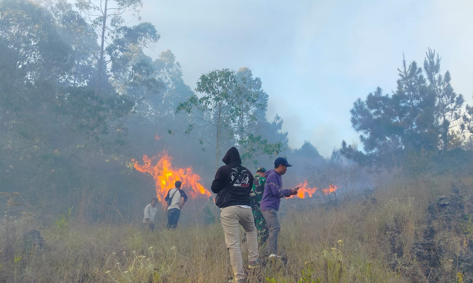 Kondisi vegetasi di lokasi kebakaran sangat kering disertai angin kencang sehingga pemadaman mengalami hambatan.